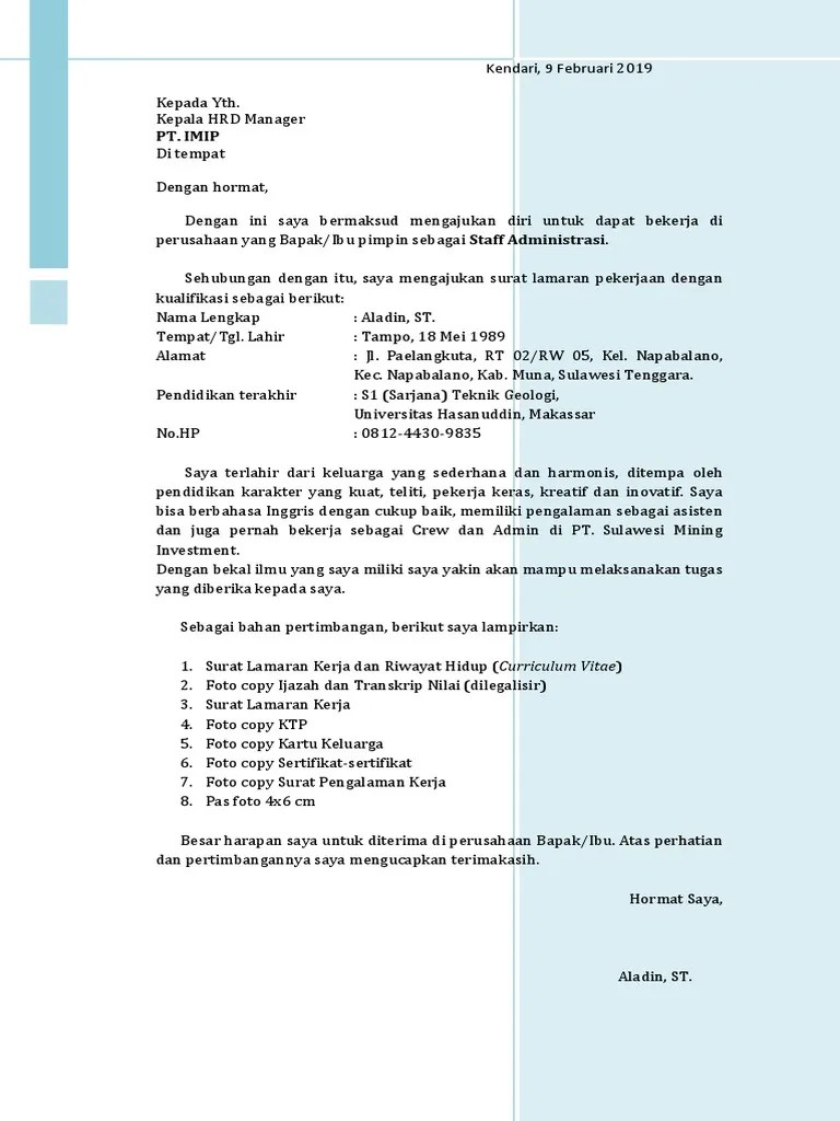 Download Lamaran Pekerjaan Imip Morowali Lamaran Pekerjaan Imip from contohsuratlengkap.org Maybe you would like to learn more about one of these? We did not find results for: Check spelling or type a new query.